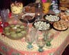 I like loading up the buffet table with things that aren't food, like plastic eyeball rings and glowsticks (it truly is “A feast for the eyes”). Move the inedible items elsewhere as guests bearing food arrive, and your table will appear full from the get-go.