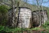 The barn has two stories and is built along the side of the hill so that both floors can be open at ground level. Dairy cows were kept on the ground floor of the barn and the upper floor—accessible from a road leading up the hill—stored hay that was dropped down chutes to the cattle below. Originally the barn was 200 feet long and could hold 100 cows, but a 35-foot section of it was removed in the early part of the last century.