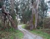 The most prominent trees along the trail are the eucalyptus, tall, shaggy, dominating the sides of the trail, encroaching on the creek and even on the barn and other historic buildings. State Parks is preserving the eucalyptus trees, as an important part of the history of the ranch. But they are not native to the hills—having been imported from Australia in the 1800’s—and can overwhelm native species. To contain the eucalyptus, young trees are removed and some mature trees have been taken out of sensitive areas, particularly around the barn and other historic buildings.