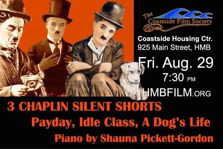 The Coastside Film Society to screen 3 Chaplin comedies with live piano accompaniment.