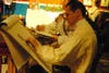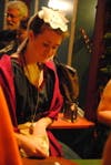 Just around the corner from Southwick's crew, costumer Sarah Goodman was sewing mermaid costumes for the fair's "tasteful" age 18 and up show titled "Naughty French Postcards."