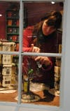 A open-window kitchen was added on to Dickens' parlor set this year so that fairgoers can see Power and Bridget Poole make fresh scones, mincemeat pie and raised game pie filled with rabbit, pheasant and venison.