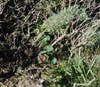 You will come upon the first and most conspicuous red flowering currant bush almost immediately after the climb from the parking lot—right next to the trail, at the foot of a shady, north-facing slope. Its clusters of bell-shaped blossoms, in bright shades of pink, are hard to miss. The currant's fan-shaped leaves are sticky to the touch and exude a strong, somewhat unpleasant odor. By summer the flowers will develop into currants—dark, purple-black fruit favored by birds but reportedly not really very good to eat. (I haven’t tried them myself. I leave them for the birds.)
