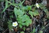 Beyond the currant bush, the Gray Whale Cove Trail winds beside rocky cliffs adorned with ferns and flowering plants not yet in bloom, except for the small wood strawberry (Fragaria vesca)—one of the two wild strawberries that grow along the trail.