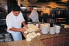 Vegan options are often available, including vegan soups and salads. Entrees are exotic and bountiful with fresh vegetables, seafood and spices. Highlights include an eggplant, chickpea, tomato, roasted seasonal baby vegetable and garlic mélange, seasoned with cumin seed, mustard seed and pomegranate syrup, baked in a tagine in the wood oven and served with a side of house rolled couscous or lamb shoulder meat slow braised with artichoke hearts, pearl onions, garlic, house cured olives and baby spring vegetables in a tomato sofregit and natural jus. The dish is finished in the wood oven atop braised potatoes.
