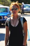 No-nonsense production assistant Alyssa Gruhn kindly but firmly shooed away onlookers to accommodate a lenghtwise shot down the leafy, wooded street.