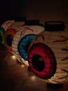 I’m not a big fan of battery-operated lights. They require too much babysitting. But for certain things, they’re essential. My daughter has a cardboard Halloween playhouse that I installed strings of eyeball lights on (the battery packs are stashed in the “chimney”).