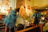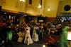 After the morning mass concluded over two hours after the event began, some stayed in the church to further contemplate the portrait of the Virgin from their seats in the pews. Most others, though, went to the church's social hall across the street where hot chocolate and pan dulce were served to the tunes of one of the bands that had played that morning.