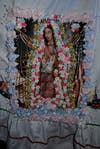 Dozens of pink, red, and yellow roses sat on a table in the back, ready for purchase for anyone who wanted to make an offering to the Virgin.