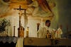 Flores gave communion next. In addition to offering wafers to members of his flock that lined up in front of him, he also sprinkled holy water on human babies and on a baby doll as well. The doll was going to be used as part of the church's nativity scene that will be assembled later this month.