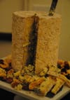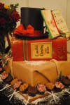 Aside from the show itself, the evening's showstopper was an intricately-decorated gilded book on display with a top hat and songbook resting on top. Made by Elegant Cheesecakes in Princeton, the "book" was completely edible and co-designed by show producer Denise Delaney. A sprinkling of cheesecake "lollypops" around the base completed the presentation.