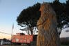 According to Moss Beach resident Deb Wong, the wooden bear was installed at Shoreline Station when Franco Carrubba took ownership of the Half Moon Bay property in 2006.