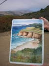 This week, the group met again at a Highway 1 coastal overlook. A cool and overcast day must have contributed to the small turnout of artists today. Some worked on last week’s painting and others started anew.