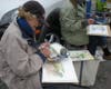 Time permitting, the group gathers at the end of each session to share their morning paintings and talk further over lunch.