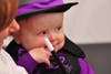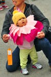 For awhile, it was neck-and-neck between Kitty in a Litter Box and the Stay Puff Marshmallow. Kitty's strategy was to stay fresh; Stay Puff was determined not to get burned. Judges in the 0-3 year-old group had a tough decision. Both contestants looked good. A tie seemed the best solution. So Kitty in a Litter Box and Stay Puff Marshmallow, along with Polka Dots and Magician Amazing, all shared first place trophies Saturday morning at the Half Moon Bay Pumpkin Festival Costume Contest.