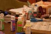 Last night was Bad Art Night. We meet the 2nd and 4th Friday of every week to do bad art. That means giving up expectations of being perfect artists, embracing happy accidents, and just hanging out. Tonight Nancy taught us all how to do "squishees," then we moved on to painting backgrounds and collaging on them. Linda hung out doing her jewelry. Patt worked on her collaged boxes and brought new member Leann. Charie started with squishees, then moved to weaving on wire. Ameneh created a metallic squishee with glitter in it. Bad art, good times.