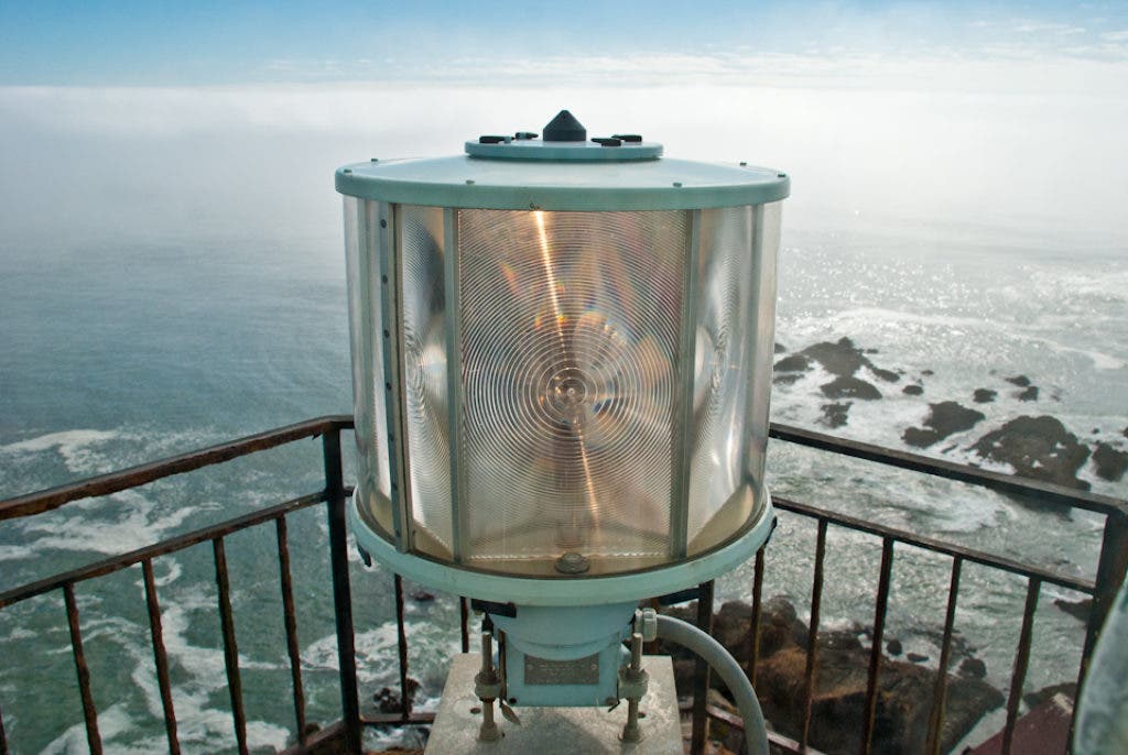 Although the has been removed from the Lens Room atop the Pigeon Point Light Station, the tower remains a working lighthouse.