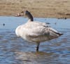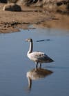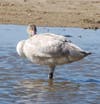 The tundra swan was first spotted by a local birder on Saturday, Nov. 5, in the lagoon formed at the mouth of Pomponio Creek by the sandbar at Pomponio State Beach. It was still there yesterday, foraging for aquatic plants in the lagoon and along its shores.