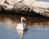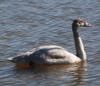 Judging by the swan’s gray-white plumage and pinkish-gray bill, it is a juvenile bird, hatched only this summer. After their first winter, adult tundra swans have all white feathers and black bills. The adults first begin breeding in their fourth or fifth year; they mate for life. Tundra swans may live for more than 20 years.