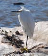 The Sequoia Audubon Society’s online birding guide has more information about the other birds you may see at Pomponio Beach, including some — a snowy egret, Bonaparte’s gulls, and various species of ducks and grebes — that are in the lagoon now.