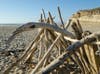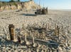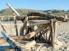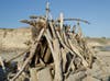Beachgoers then sculpt the wood into shelters and art pieces that sometimes look like Salvador Dali paintings.