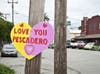 A collection of handpainted hearts recently -- and mysteriously -- appeared along the San Mateo County coast. Decorated in festive colors with whimsical images and sincere messages, they dot Highway 1, San Gregorio and Pescadero.