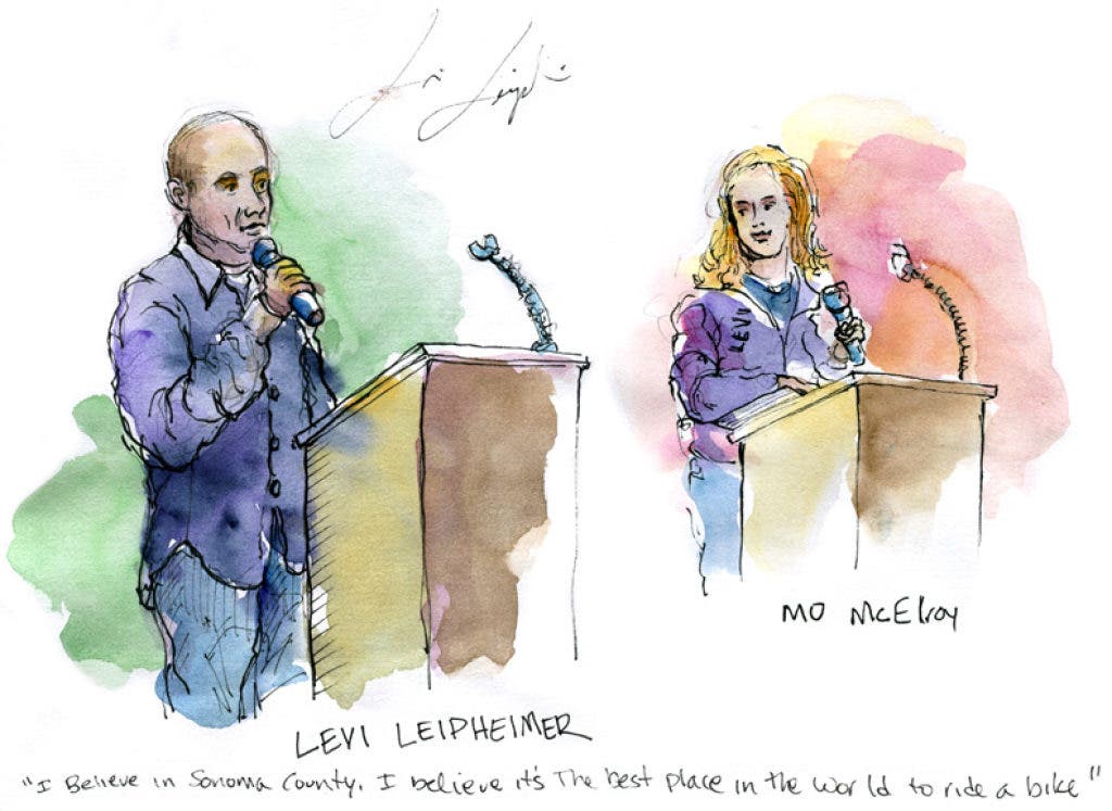 Essentially, he talked about Sonoma County’s beautiful rural roads and moderate weather that make it a perfect place to cycle year-round. Levi stated further, “I believe in Sonoma County. I believe it’s the best place in the world to ride a bike.”