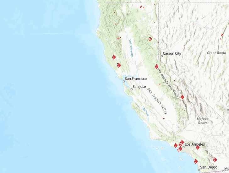 The Golden State is under a state of emergency as several fires have scorched tens of thousands of acres, forced tens of thousands of evacuations and caused millions to lose power from mandatory shutoffs.