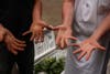 Next Brown gently squeezes Meyer lemons and selects three and says, “We already use their lemons in our recipes.”