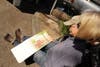 We taste curly celery, we stop to see Phil McDonel’s water color of Jimtown Store’s truck, we stop so Brown can order honey from Sandra Alvarez, co-owner of Hector’s Honey. Brown sniffs a candle and says, “Bee’s wax candles are divine.”