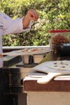 My final stop of the week is with two of Simi Winery’s chefs. I watch and create a digital video of chef Joshua Feliciano as he prepares a Margarita pizza with flare for the outdoor oven in Simi’s Landslide Terazzo. The Landslide Terazzo is a pizza restaurant open just Friday and Saturday seasonally. It opened on May 13.
