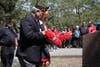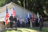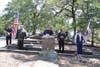 Bright sun framed members of the American Legion, Sotoyome Post 111, as they gathered Monday in front of the American Legion marker “Dedicated in Memory of World War Veterans 1933.”