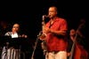 Marc Cary was first introduced to Healdsburg audiences at the 2005 Festival, and as it happens that was his (successful) audition for the Motéma label as well, singing with them shortly thereafter. For last night’s performance he diverged from his usual trio configuration, adding the muted trumpet of David Weiss and the manic percussion of Daniel Moreno.