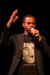 Babatunde Lea and Friends took the stage just before 9:30, but it wasn’t too long before their music filled the theater and spilled out into the street. Lea – a charismatic presence on drums, with his dreads and African tunics – led the charge through a series of songs from the Umbo Weti recording of several years ago that celebrated the vocal talents of the late Leon Thomas.