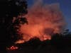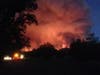 The fire has destroyed several outbuildings and is traveling at a rapid rate of speed, officials said.