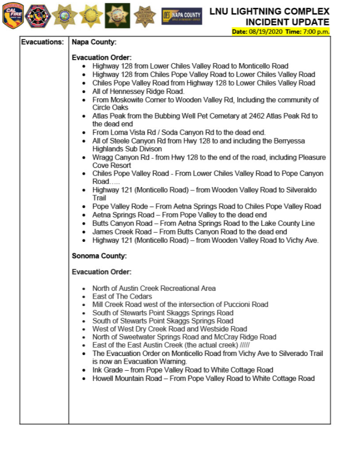- Napa County Lightning Complex Fires Latest: More Evacuations
