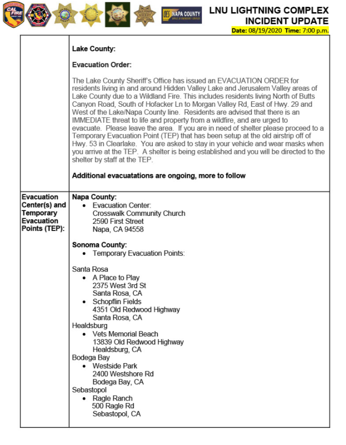 — CAL FIRE LNU (@CALFIRELNU) August 20, 2020