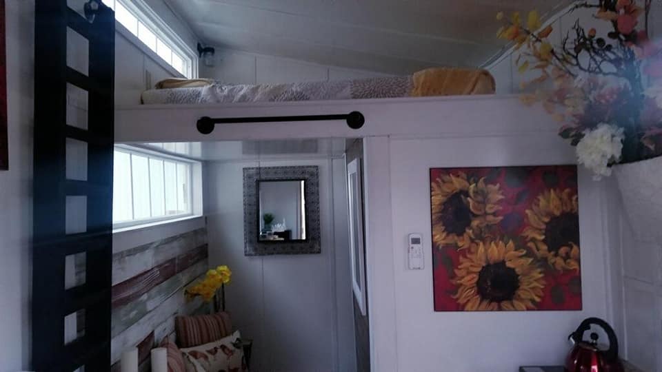 The portable mini houses are a maximum of 240 square feet and are built on the frames of recycled camp trailers, she explained.
