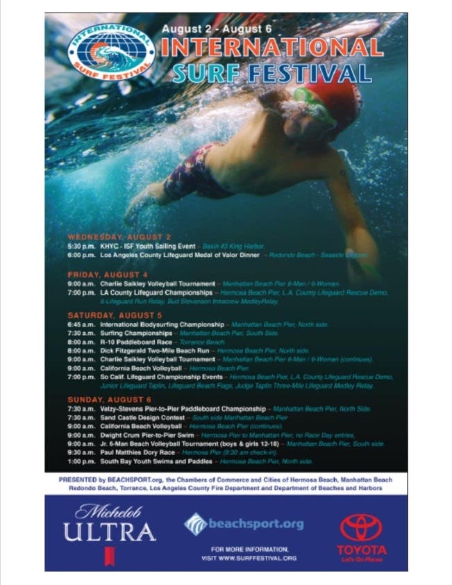 - You can watch lifeguards race, a pier to pier swim and pier to pier paddle, volleyball sand run, and activities for the kids. Presented by BeachSport.org, the City of Hermosa Beach is a co-sponsor of the event. For more information, visit the International Surf Festival website.