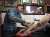"[The city] thinks it's going to attract the wrong element into their city, the undesirables," Anderson said while stretching skin and outlining a custom-designed tattoo on a client at Yer Cheat'n Heart, the tattoo parlor he runs in Gardena. "Tattoos are not just for sailors and fallen women. The class of people they're worried about can't afford the going rate."