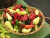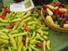 Is it really time to start thinking about pumpkins? T&D Farms has the first acorn and butternut squash varieties as well as a selection of sweet and spicy peppers, one of the last of the summer produce to be harvested from the vine. There are such varieties such as Anaheim, banana wax and the traditional green jalapeno. I like to roast or grill any of these peppers with olive oil, salt and pepper and to serve as a condiment with grilled meat or chicken. It’s also nice to hang a bunch in the kitchen window and let them dry for use during the winter.