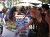 Chef and radio personality Evan Kleiman was also on hand along with Los Angeles Times food editor, Russ Parsons, who gave advice on how to enjoy the summer tomato harvest. Chefs from the Farmer’s Kitchen, the market-sponsored restaurant, gave cooking demonstrations using ingredients purchased at the farmers' market.