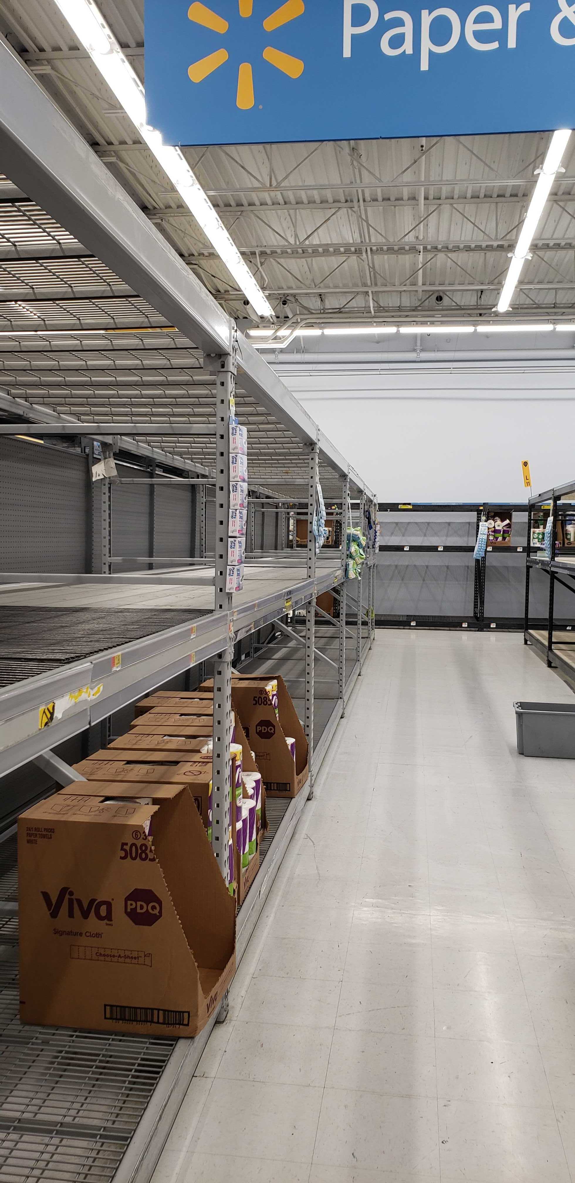 Retailers were packed Thursday with residents vying for household staples. Shoppers were greeted with eerie rows of empty shelves at Targets, Walmarts and grocery stores following a run on toilet paper as fear of an outbreak spread.