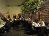 The highlight of Wood and Vine is the outdoor patio. Situated in a tree-lined courtyard, white marble tables and chairs are arranged under heat lamps. A large table with a center fire pit provides the perfect spot to grab an outdoor drink even on the chilliest of nights.