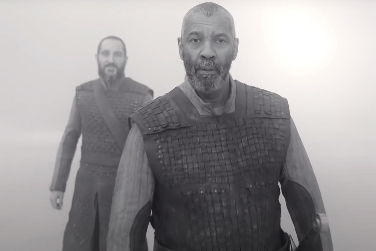 The Thane of Cawdor has been vanquished for King Duncan (Brendan Gleeson) by Macbeth (Denzel Washington) and Banquo (Bertie Carvel). On the road back from battle, Macbeth encounters three witches (Kathryn Hunter) who tell him he shall be king! In gratitude, King Duncan gives the title of Thane of Cawdor to Macbeth who then writes Lady Macbeth (Frances McDormand) to tell her the news – and the witch prophecy. The king also gives his praises Prince Malcolm (Harry Melling).