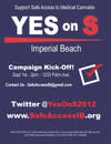 On November 6th, 2012 Imperial Beach voters will choose whether to allow criminalization of the most vulnerable citizens to continue through the city’s on safe access to medical cannabis, or to protect sick and dying patients by repealing the ban and creating tough zoning and operational requirements as defined in Prop S.