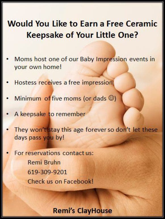 Artistically memorialize a mold of your infant’s hands or feet in a clay surfboard. Other shapes are also available.