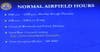 Normal airfield hours are Monday to Friday, 8 a.m. to 11 p.m., and Friday 8 a.m. to 6 p.m., with no activity on weekends and federal holidays.