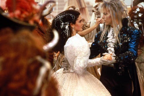 Jareth (David Bowie), the Goblin King, takes Toby and tries to make a deal with Sarah but she wants her brother back. She has thirteen hours to get through a labyrinth or else Toby belongs to the Goblin King. Along the way she meets Hoggle a grumpy dwarf and asks for help in getting through the labyrinth and also meets the beast Ludo.