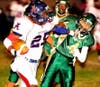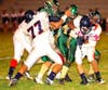 A Lashon Riggins punt block led to a safety, a fumble recovered by Johnny Hay led to a touchdown, and a Richard Moriel field goal made it 12-0 at the half.